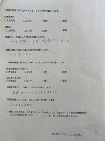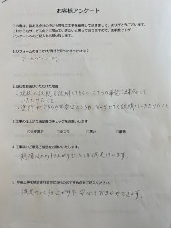 【外壁塗装相談窓口】札幌店では工事終了後にアンケートをいただき、良い点、悪い点を