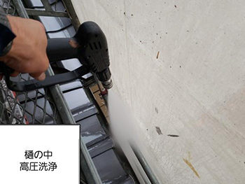 汚れが溜まりやすい樋の中も高圧洗浄します。