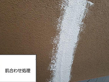 施工中の外壁です。コーキングした部分が目立たないよう、肌合わせ処理を行います。