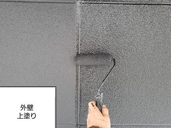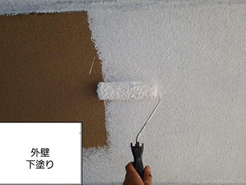 外壁の2度目の下塗りの様子です。塗り重ねることで、むらが出にくくなります。
