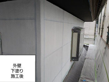 外壁下地処理の後、下塗りの様子です。