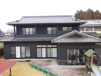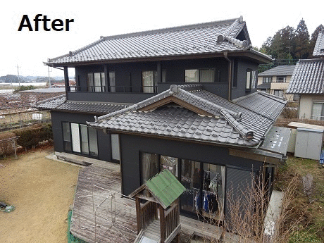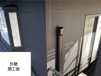 施工後全景です。外壁はしっかり補強され、ヒビもなくきれいになりました。